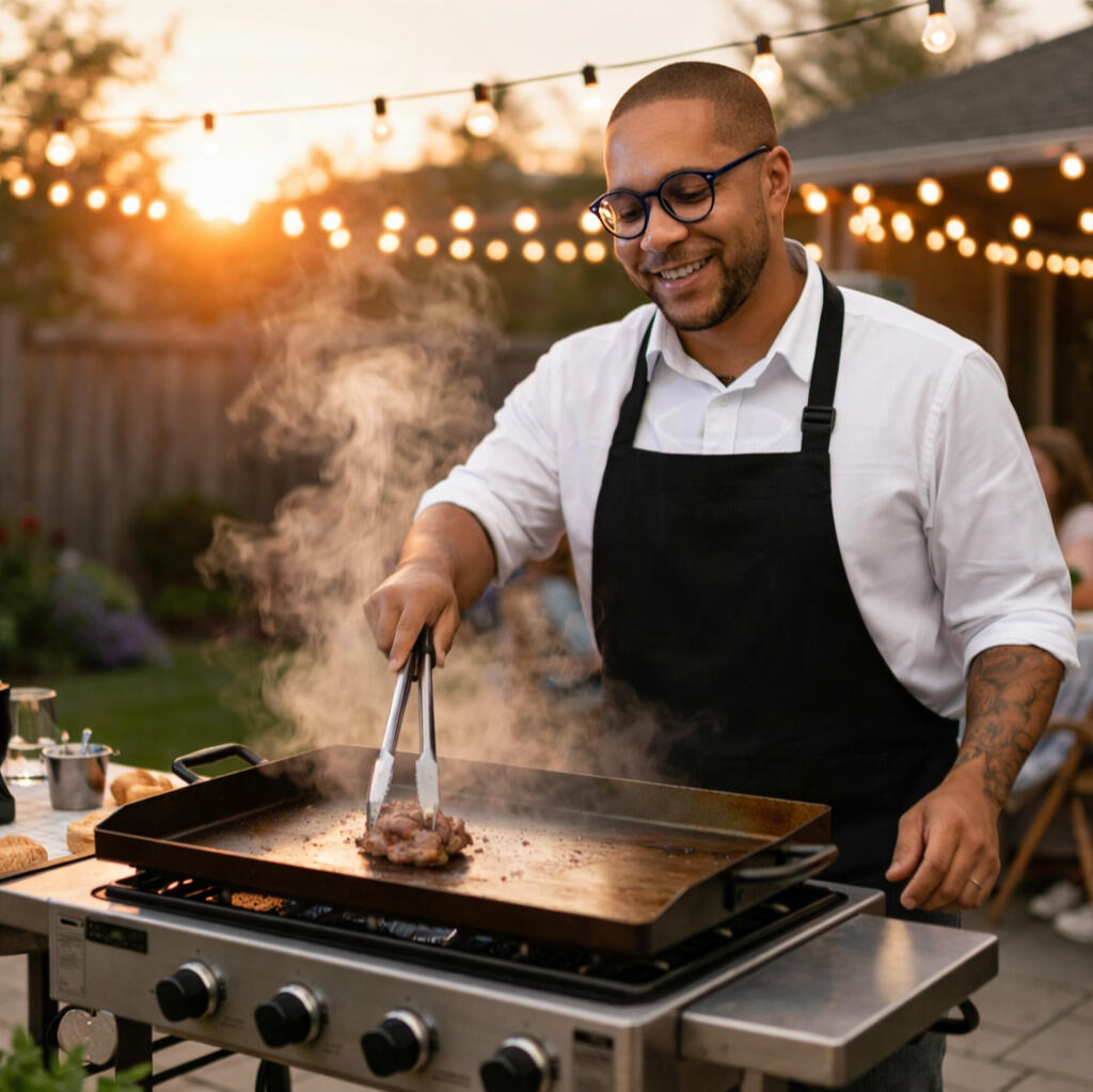 I come to your home and handle all the grilling. You relax, enjoy your guests, and get perfectly cooked food every time.